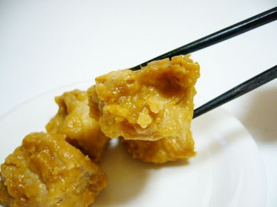 クールで送られてくるためか、唐揚げのまわりに氷がついてしまっており、
